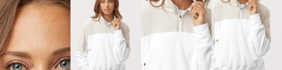 * 12 ounce, 75% cotton/25% polyester * 58% cotton/40% polyester/2% elastane rib-knit side inserts, cuffs and bottom band * Tag-free label * Exterior faux leather logo loop label * 3-piece, two-ply hood with drawcord * Set-in sleeves * Front pouch pocket